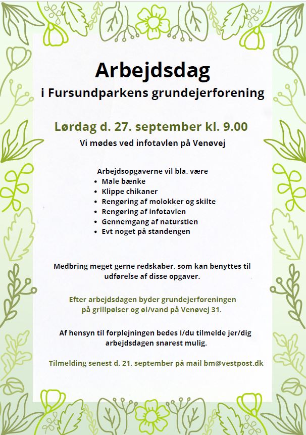 Arbejdsdag i Fursundparken lørdag d. 28. september kl. 9 Vi mødes ved Infotavlen